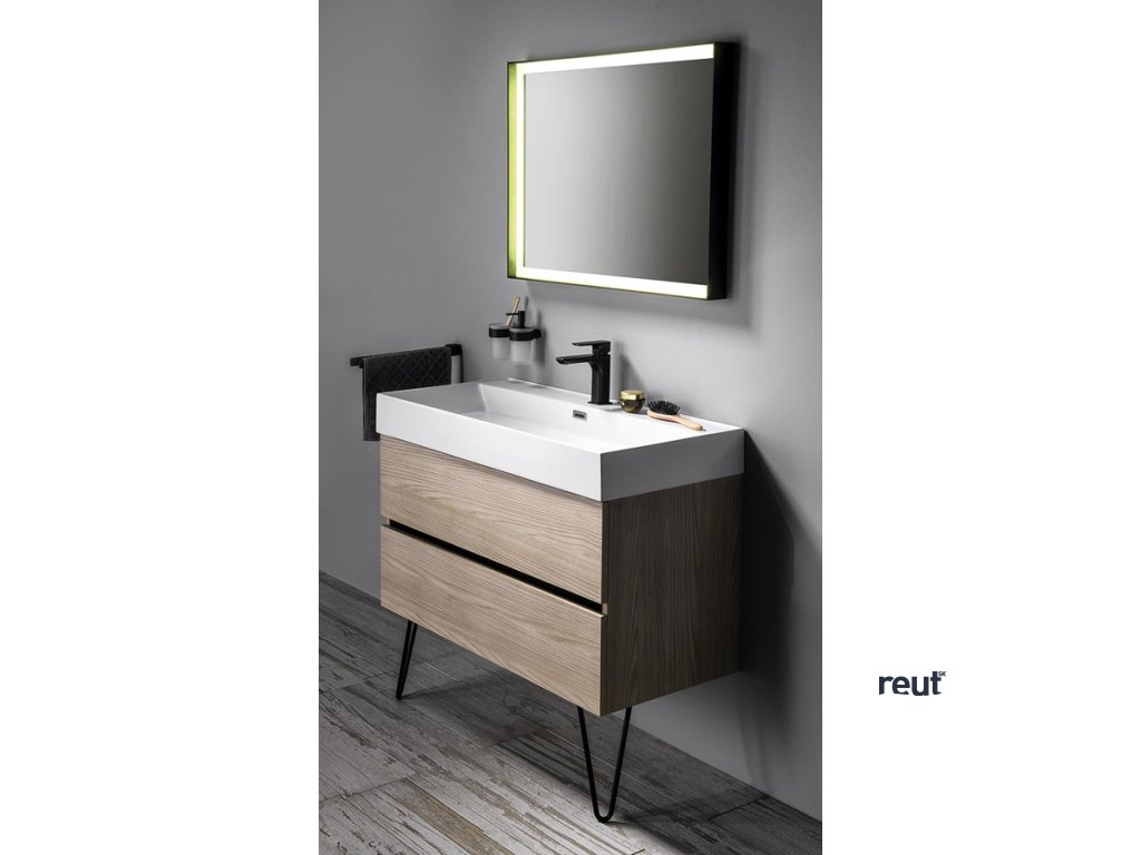 Séria ODETTA ponúka umývadlové skrinky v kombinácii s 3 druhmi umývadiel - keramická KARE, z liateho mramoru GODIVA a betónová QUADRADO. Séria je tiež navrhnutá pre vybrané umývadlá na postavenie. Rozmerovú variabilitu umožňuje kombinácia umývadlových a spodných skriniek. Bezúchytkové zásuvky sú vybavené výsuvmi BLUM s tlmeným dovieraním. Horná zásuvka je bez výrezu pre sifón, čím sa zvyšuje úložná plocha zásuvky. Medzi zásuvkami je hliníková lišta CHANEL v čiernej alebo bielej farbe. Na prianie je možné dodať lištu aj v zlatej farbe.