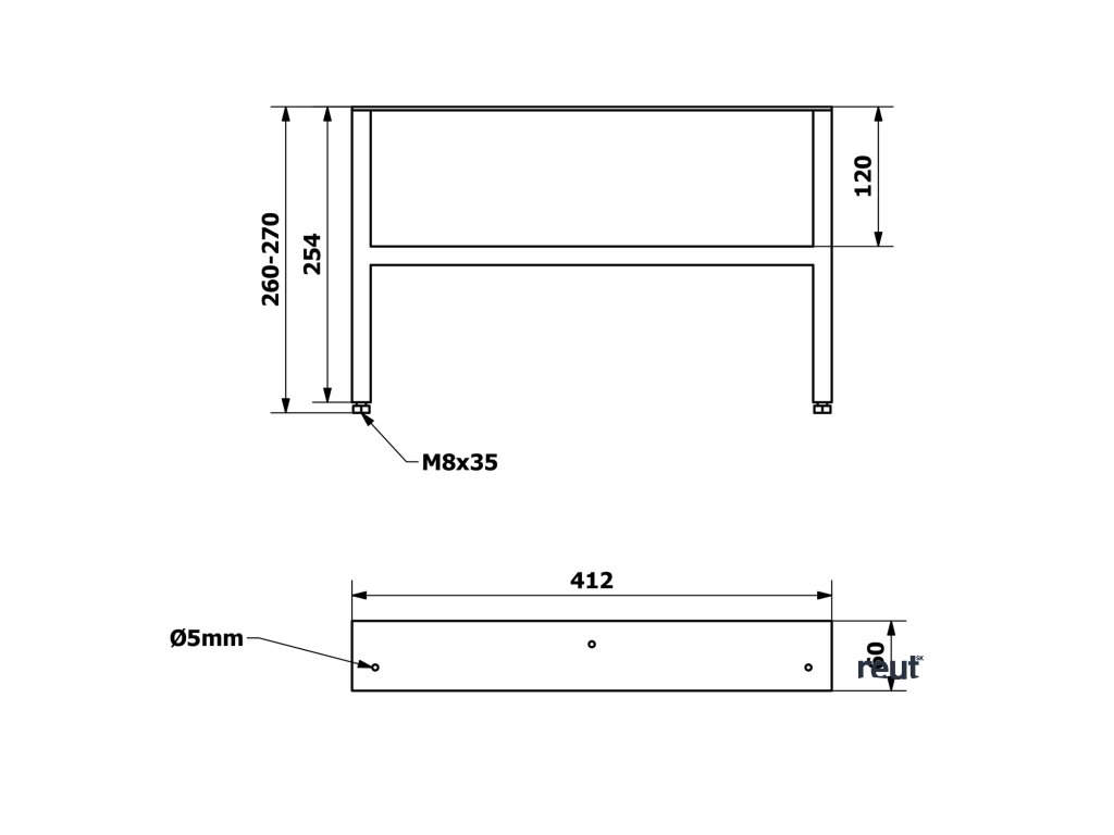 Sapho ODETTA podperné nohy 60x260-270x412mm, lakovaná oceľ, čierna matná, 2 ks 30313