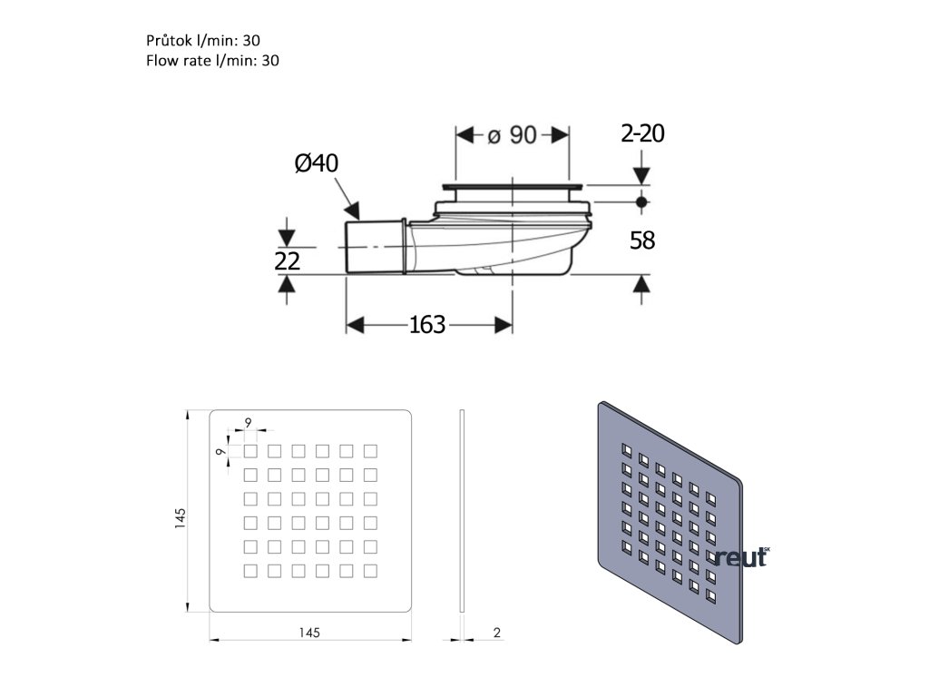 Polysan FLEXIA vaničkový sifón, otvor vaničky 90mm, DN40, biela 17741