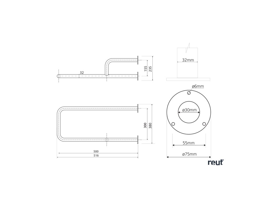 Pomocné prostriedky a bezpečnostné madlá sú zhotovené z nerez rúrok d = 32 mm, materiál: 1.4301.