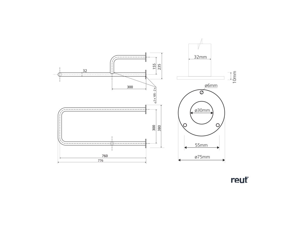 Pomocné prostriedky a bezpečnostné madlá sú zhotovené z nerez rúrok d = 32 mm, materiál: 1.4301.