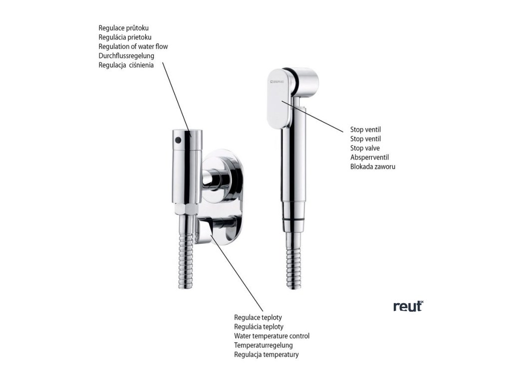 Sapho Podomietkový regulátor teploty vody pre bidetové spršky, chróm 1209-03