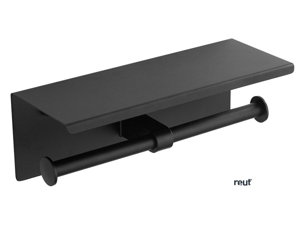 Sapho PIRENEI Dvojitý držiak toaletného papiera s poličkou 30cm, čierna mat UN1196B