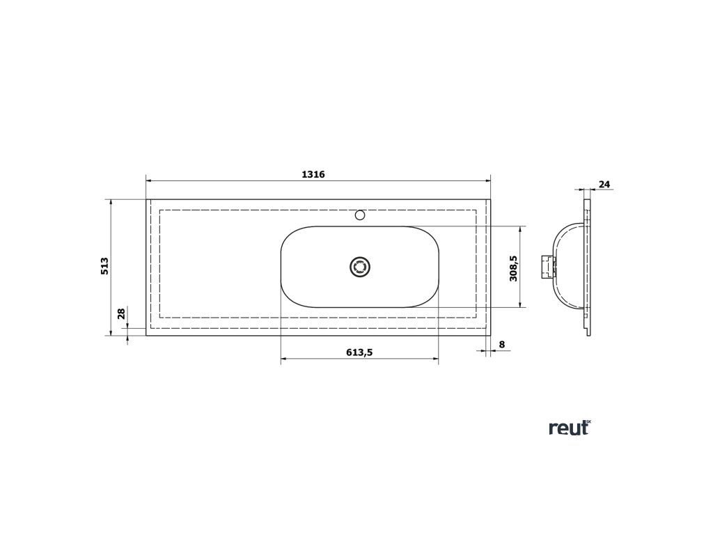 Sapho TREOS umývadlo 131,6x51,3 cm (20+110), Rockstone, pravé, biela matná TS132-0101-R